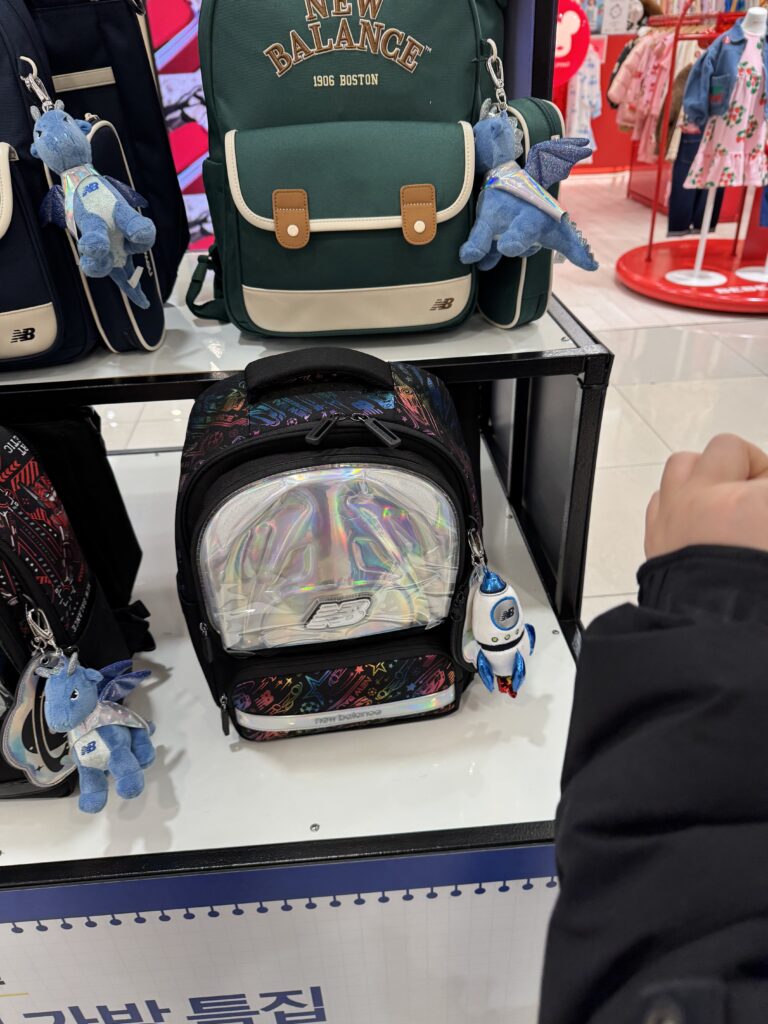 첫째 아이의 경험이 있었기 때문에, 이번엔 조금 더 신중하고 현실적인 기준으로 초등학교 입학 가방을 고르게 되었어요. 가방은 갤러리아 타임월드점에서 구경했습니다.